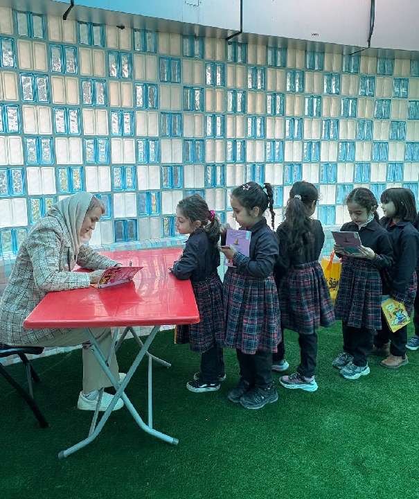 برگزاری نمایشگاه کتاب به مناسبت هفته کتاب و کتابخوانی و با دعوت از نویسنده کودک خانم مژگان کلهر در دبستان ایراندخت برگزار شد